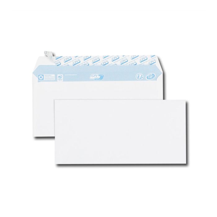 Paquet De 50 Enveloppes Blanches GPV – Format: DL – Grammage Papier: 80 g/m² – Fermeture/Usages: Enveloppes bande de protection – Fermeture sécurisée avec collage renforcé – Papier issu de forêts gérées durablement – Dimensions: 110X220 mm – Couleur: Blanc.